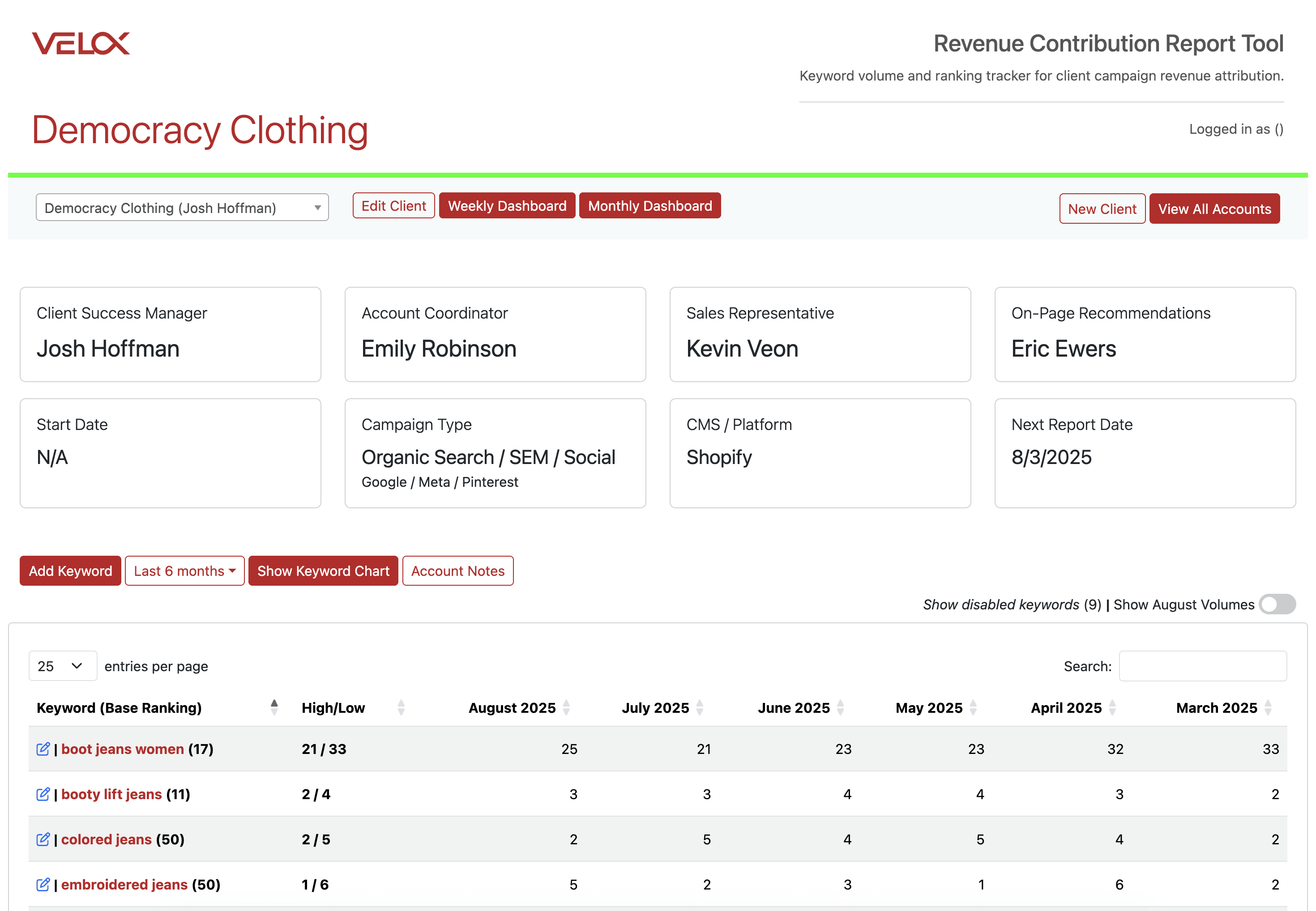 New Monthly Revenue for Democracy Clothing